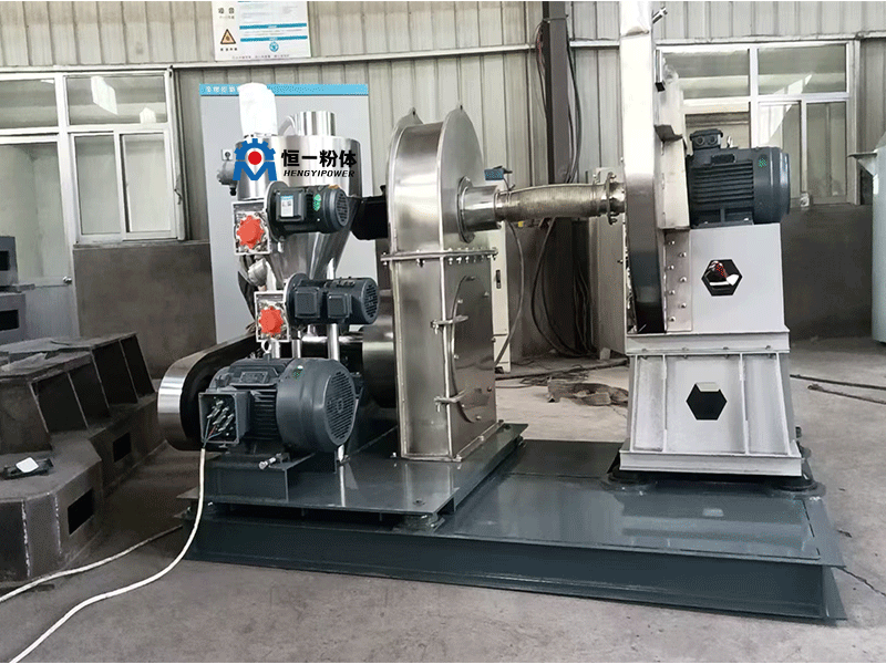 碳酸氢钠(小苏打)原料经由料仓下部的定量加料机均匀送入粉碎机进行超细研磨,达到颗粒细度的产品(D90:20μm或根据脱酸需要灵活调整产品粒度)被高压风机输送到